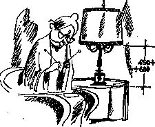 Более молодые люди при соблюдении рекомендаций получат несколько повышенный комфорт. А вот с людьми старшего возраста сложнее. Дело в том, что для 50-летних освещенность рабочей поверхности желательно повысить вдвое, а для 60-летних— даже в 5 раз. Увеличить освещенность можно, несколько увеличив мощность источника света (например, заменив лампу накаливания 60 Вт на 100 Вт), но при этом следует всегда проверить, рассчитан ли светильник на применение более мощной лампы. Если нет, надо его заменить другим, который удовлетворит этому требованию, причем замена обязательна, так как лампа большей мощности обязательно приведет к порче деталей светильника (может сгореть абажур, расплавиться пластмассовый патрон и др.), а иногда и к тяжелым последствиям— короткому замыканию, пожару. Будьте осторожны, не нарушайте режима работы светильника, указанного в его паспорте.